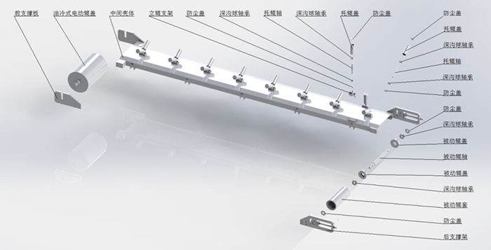 功能描述:內壁拋丸除銹系統包含液壓站驅動車、輸砂伸臂、拋頭、提升機、分離器、回丸系統、打砂前倉、轉管裝置(或轉管車)、打砂后倉等。鋼管內壁預熱后(高于室溫3°以上)轉運到內壁除銹工位,前后倉將鋼管兩端密封,鋼管旋轉。液壓站、提升機、分離器、回丸系統、輸砂皮帶、拋頭馬達依次開啟,打開漏砂閥向前移動拋頭直至鋼管末端,然后返回到初位置。