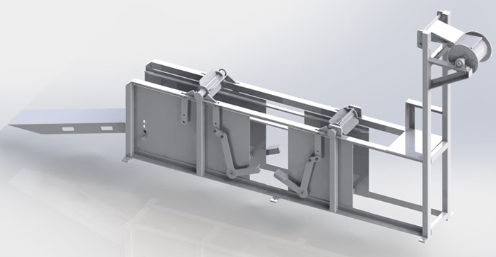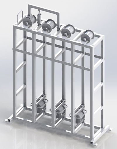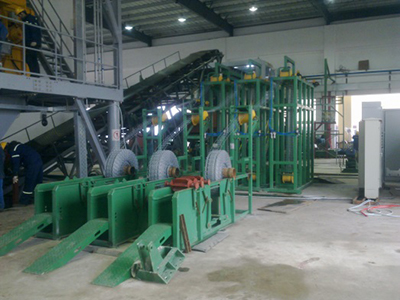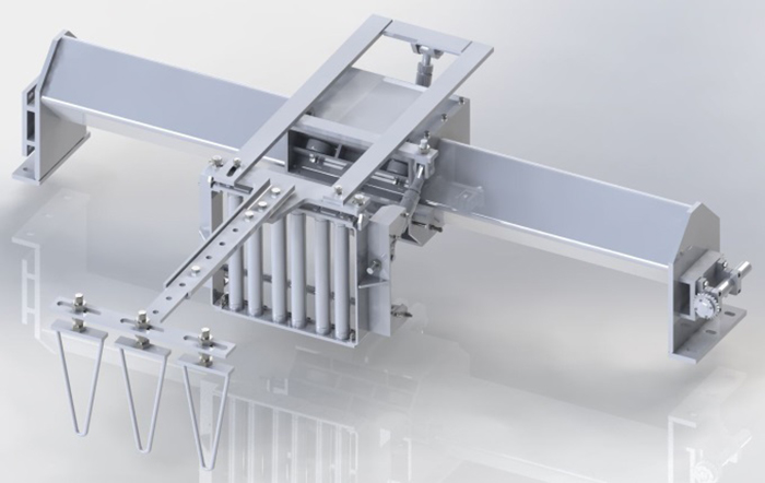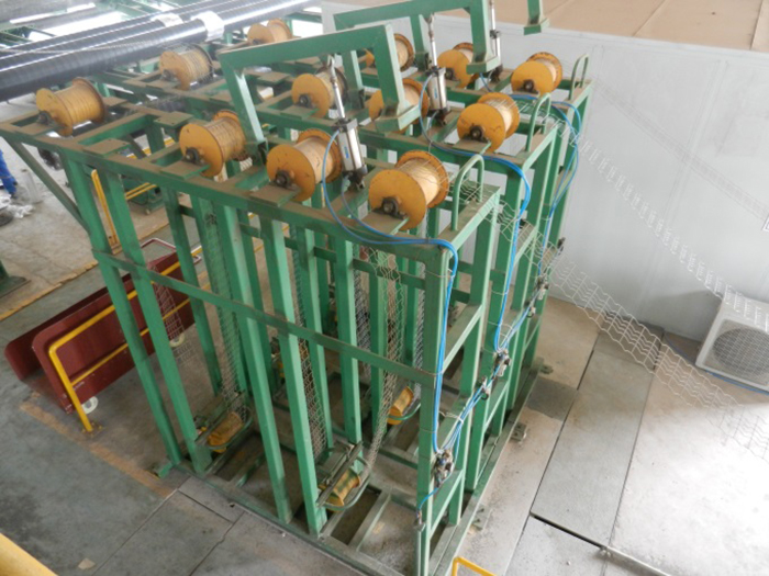 功能描述:放網機構包含放卷機構、張緊機構、纏繞機構等。鋼管在旋轉的狀態(tài)勻速前進拋射輥前,將鋼絲網掛在預裝好的掛鉤上?梢杂行У谋WC配重材料附著在鋼管外壁表面。